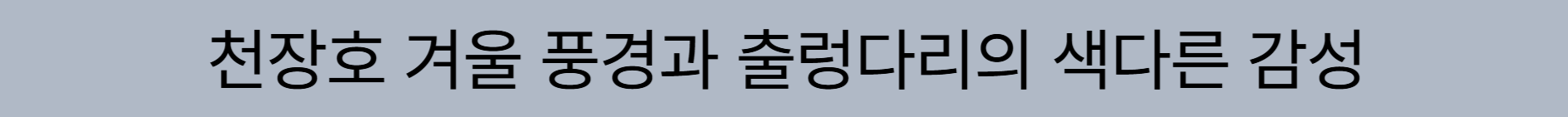 특히 겨울 오후 시간대에는 낮은 햇빛이 호수 위로 부드럽게 내려앉으며 더욱 감성적인 분위기를 연출한다. 출렁다리의 직선적인 구조와 하얀 설경, 잔잔한 호수가 어우러지며 사진으로 남기기에도 매우 좋은 장면을 만들어낸다. 천장호는 단순한 관광지가 아니라, 겨울 자연이 가진 고요함과 깊이를 온전히 느낄 수 있는 공간이라는 점에서 의미가 크다.