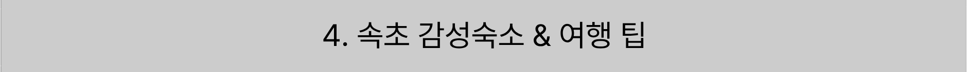 속초 감성여행의 마무리는 ‘숙소 뷰’가 좌우한다고 해도 과언이 아닙니다. 오션뷰 숙소로는 라마다 속초 호텔과 롯데리조트 속초가 대표적입니다. 객실 창문을 열면 바로 동해의 파도가 들려오며, 야경이 아름다운 루프탑 바가 인기가 높습니다. 좀 더 프라이빗하고 감성적인 공간을 원한다면, 영금정 인근의 소형 독채펜션이나 청초호 앞 감성 게스트하우스를 추천드립니다. 미니멀한 인테리어와 따뜻한 조명이 어우러져 속초의 감성을 온전히 느낄 수 있습니다. 여행 팁으로는, 속초 주요 명소들이 도심권에 집중되어 있어 도보 여행이 가능하지만, 설악산이나 낙산까지 이동할 경우 렌터카를 이용하면 효율적입니다. 추천 루트는 다음과 같습니다: 1일차 – 속초해변 → 영금정 → 중앙시장 맛집 탐방 2일차 – 설악산 케이블카 → 청초호 산책 → 감성카페 거리 투어 이 루트는 바다, 자연, 감성, 미식이 완벽하게 조화된 일정으로, 남녀노소 모두에게 사랑받는 속초 여행 코스입니다.