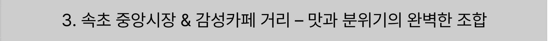 여행의 완성은 언제나 맛있는 음식이죠. 속초 중앙시장은 현지의 맛과 활기를 느낄 수 있는 대표 명소입니다. 가장 유명한 먹거리는 단연 속초 오징어순대입니다. 신선한 오징어에 채소와 당면, 돼지고기를 넣어 쫄깃하게 쪄낸 이 메뉴는 속초의 대표 향토 음식으로 손꼽힙니다. 시장 안에는 속초닭강정, 명태회무침, 회오리감자 같은 간식거리도 풍부해, 먹거리 투어를 즐기기에도 제격입니다. 식사 후에는 속초 카페거리로 향해보세요. 청초호 주변과 해변 도로를 따라 감성카페들이 줄지어 있으며, 특히 ‘카페 더마렌’과 ‘비치커피로스터스’는 인플루언서들이 즐겨 찾는 오션뷰 카페입니다. 하얀 인테리어와 따뜻한 조명, 그리고 바다를 향한 테라스 좌석이 어우러져 어느 각도에서나 인생샷을 남길 수 있습니다. 특히 오후 늦은 시간, 바다 위로 떨어지는 석양을 바라보며 커피 한 잔을 즐기는 순간은 속초 감성여행의 하이라이트라 할 수 있습니다.